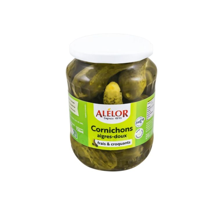 Cornichons, eau, vinaigre, sucre, sel, aneth, graines de MOUTARDE.