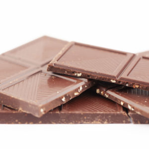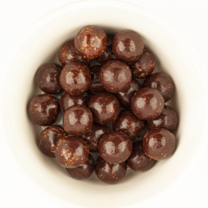 Chocolat noir (masse de cacao, sucre, beurre de cacao, émulsifiant : lécithines (SOJA), arôme naturel de vanille), AMANDES caramélisées 10% (AMANDES, sucre, sirop de glucose, miel), NOISETTES caramélisées 7% (NOISETTES, sucre, sirop de glucose, miel), pistaches 6%, agent d’enrobage : gomme arabique.