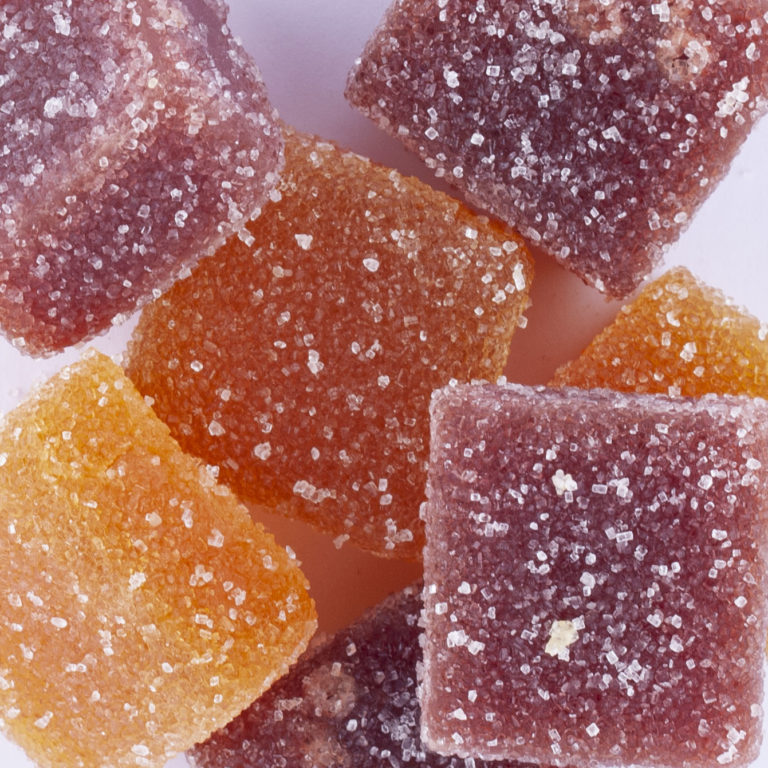 Abricot : purées de fruits 61% (abricot 41%, pomme 20%), Cassis : purées de fruits 67% (cassis 31%, abricot 23%, pomme 13%), Fraise : purées de fruits 55% (fraise 32%, pomme 23%),Orange : purées de fruits 56% (orange 45%, abricot 11%), Poire : purées de fruits 55% (poire 45%, abricot 10%), Sucre, sirop de glucose, gélifiant : pectines, arômes naturels (abricot, cassis, fraise, orange, poire), jus de citron concentré.