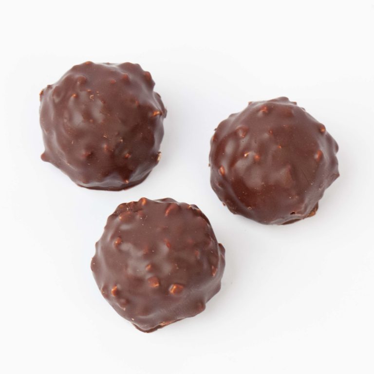 Praliné 31% (NOISETTES, sucre), sucre, beurre de cacao, masse de cacao, poudre de LAIT entier, AMANDES, LACTOSE, beurre pâtissier (LAIT), poudre de cacao, émulsifiant: lécithines (SOJA), sel, arôme naturel de vanille.