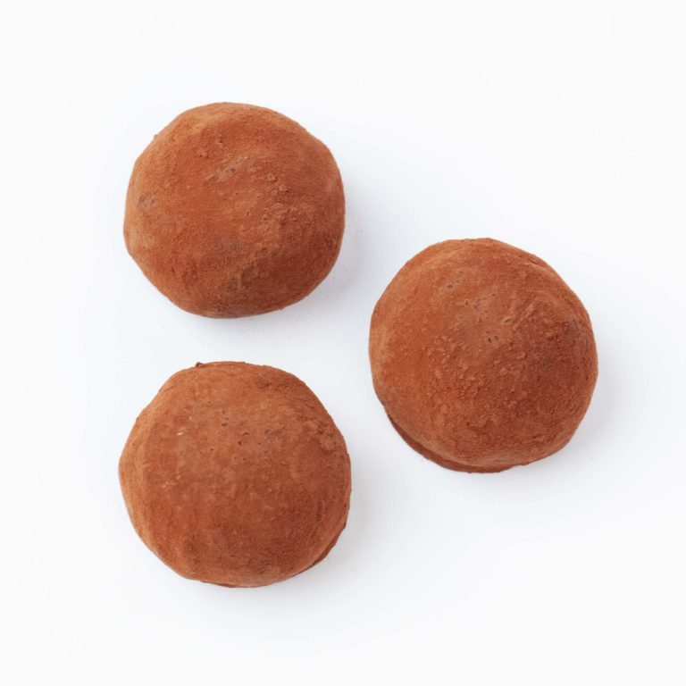 Masse de cacao, sucre, beurre de cacao, crème (LAIT) 13%, poudre de LAIT entier, stabilisant : sorbitol, sirop de sucre inverti, poudre de cacao 1%, sirop de glucose, arômes, émulsifiant : lécithines (SOJA), beurre pâtissier (LAIT), agent d’enrobage : gomme arabique.