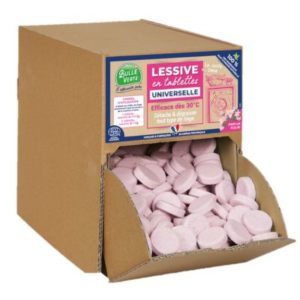 >30% eau, <5% agents de surface anioniques, chlorure de sodium, agents de surface non ioniques, agents de surface amphotères, correcteur d’acidité, colorant rouge de garance. 99,64% du total des ingrédients sont d’origine naturelle. Les agents de surfaces sont d’origine végétale.